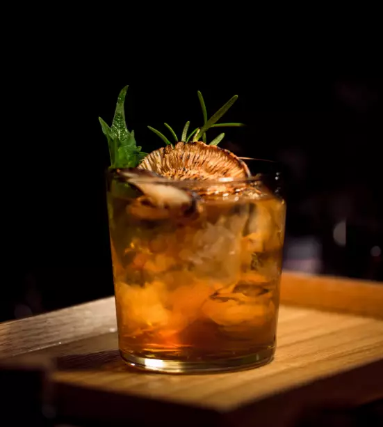 Combine in a rocks glass with a king cube
